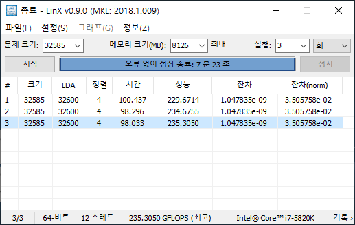 거의 3시간동안 벤치 돌리고 전압 새로 잡고 하면서 안정화는 끝냄.