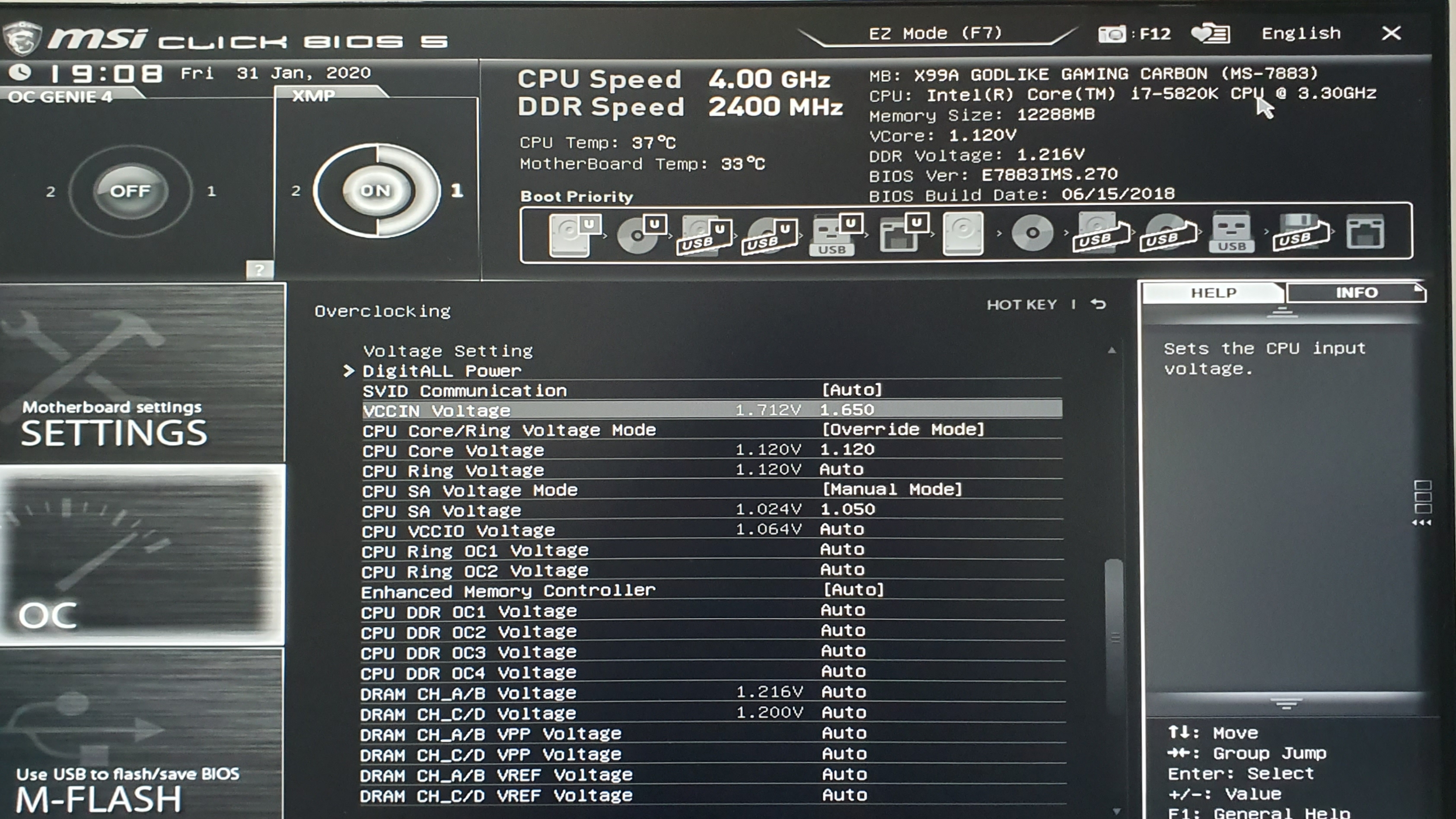 VCCIN Voltage는 코어에 들어가는 전체 전압임. 요걸 잘 설정해줘야 지랄이 안 난다.